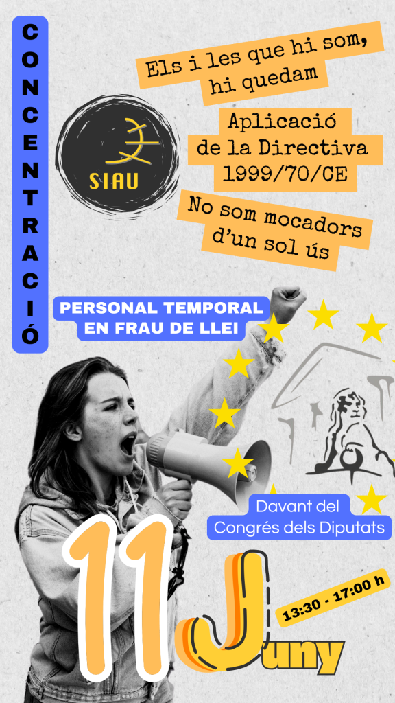 A més, SIAU ha participat en una concentració davant del Congrés dels Diputats per visibilitzar l’abús de temporalitat i defensar que els i les que hi som, hi quedam. “No som mocadors d’un sol ús” ha estat una de les consignes més repetides.